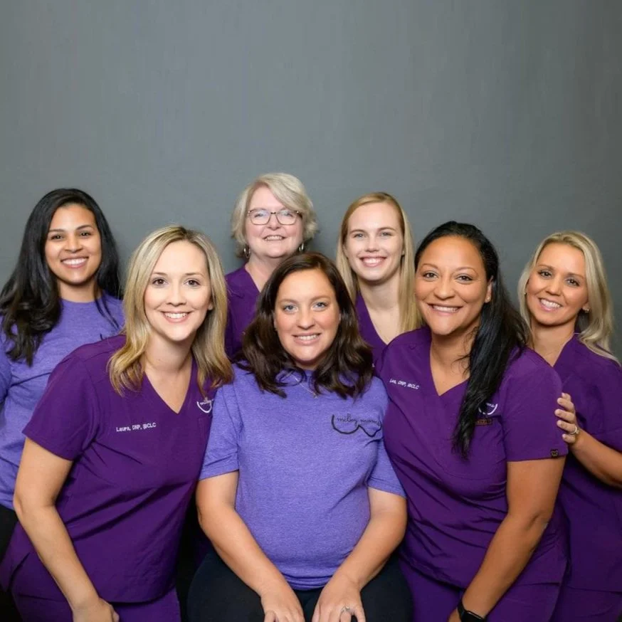 Team members Lana Smith, Mallory Alves, Saba Rastegar, Savanna Bullard, Jordan Gatton, Kelly McKenny, Amy Hess, Trina Gardiner, Cathy Gibson, Laurel Cahill, Kerry Elderkin, Tatiana Moore, Jessica Peed, Kacey Heckathorn, Priscilla Anne, and Tiffany Rice bring over 200 years of healthcare experience to the Milky Moms team.
